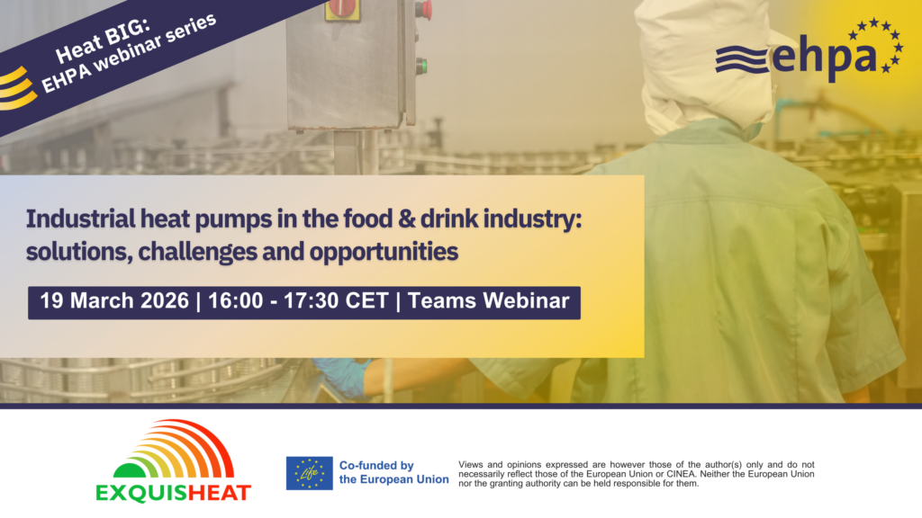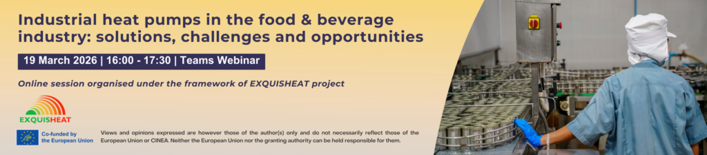 This 90-minute online session, organised under the framework of EXQUISHEAT project, is designed for food & beverage (F&B) industry companies interested in reducing energy costs and decarbonising their production processes through the use of heat pump technologies.