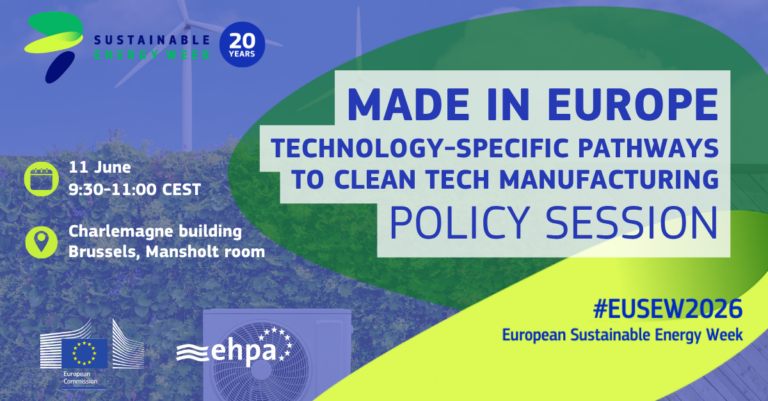 Affordability and competitiveness will be the focus of two sessions EHPA is organising with the European Commission at this year’s European Sustainable Energy Week (EUSEW) – the European Union’s flagship event on renewables and energy efficiency taking place in Brussels from 9 to 11 June 2026.