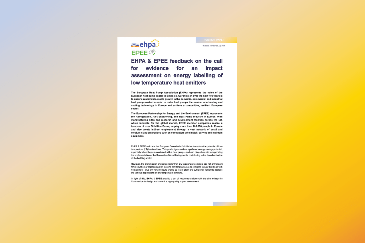 EHPA & EPEE welcome the European Commission’s initiative to explore the potential of low-temperature (LT) heat emitters. This product group offers significant energy savings potential, especially when they are combined with a heat pump, and can play a key role in supporting the implementation of the Renovation Wave Strategy while contributing to the decarbonisation of the building sector.