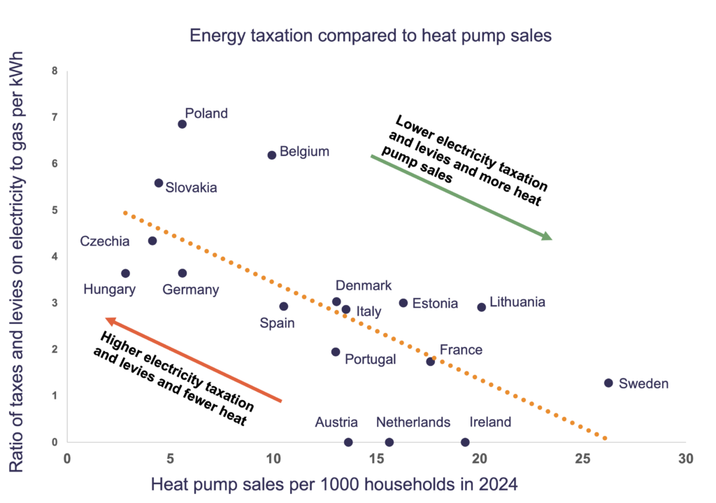 In contrast, countries that ensure electricity is taxed less heavily than gas make heat pumps more affordable and attractive to consumers, and this is shown in the sales figures.