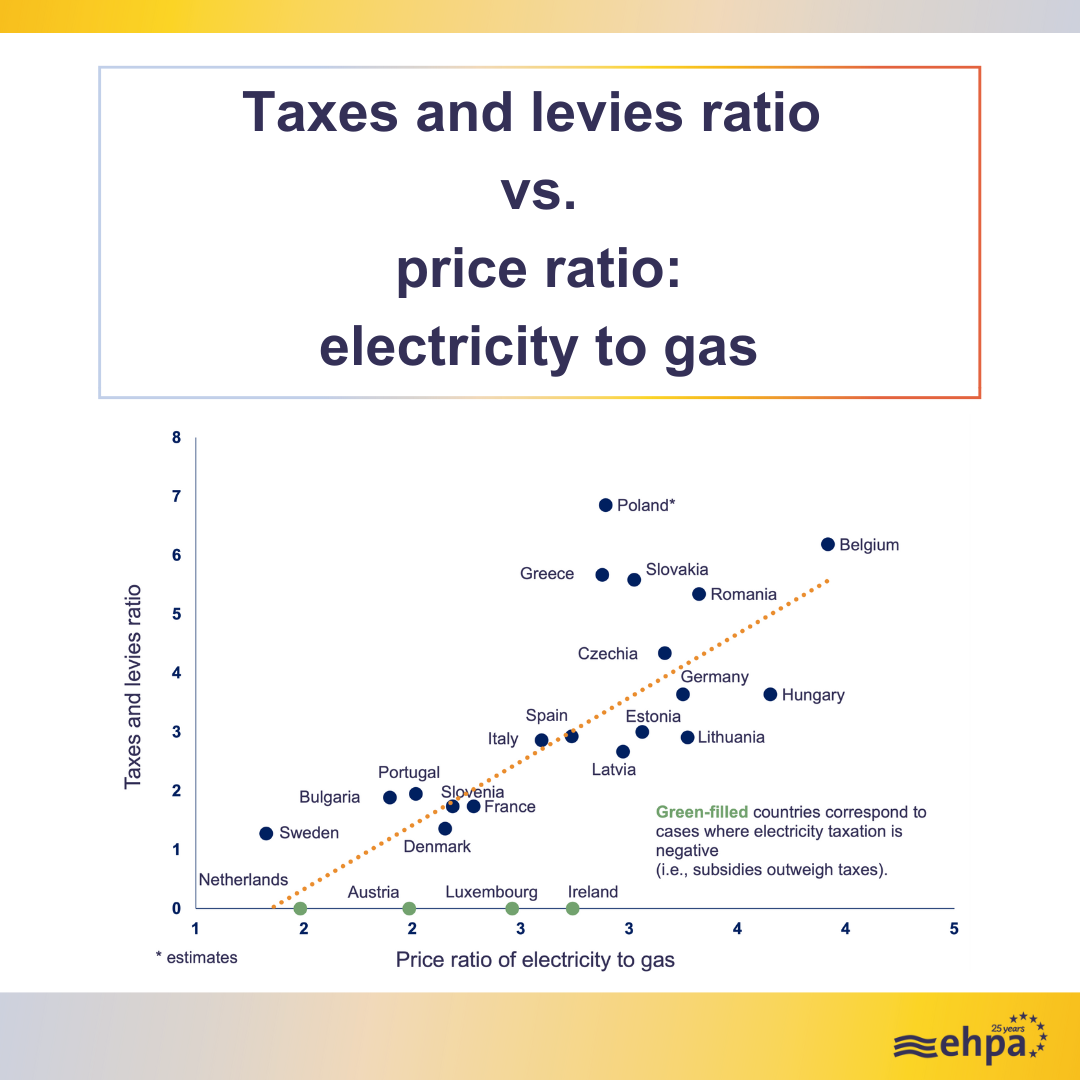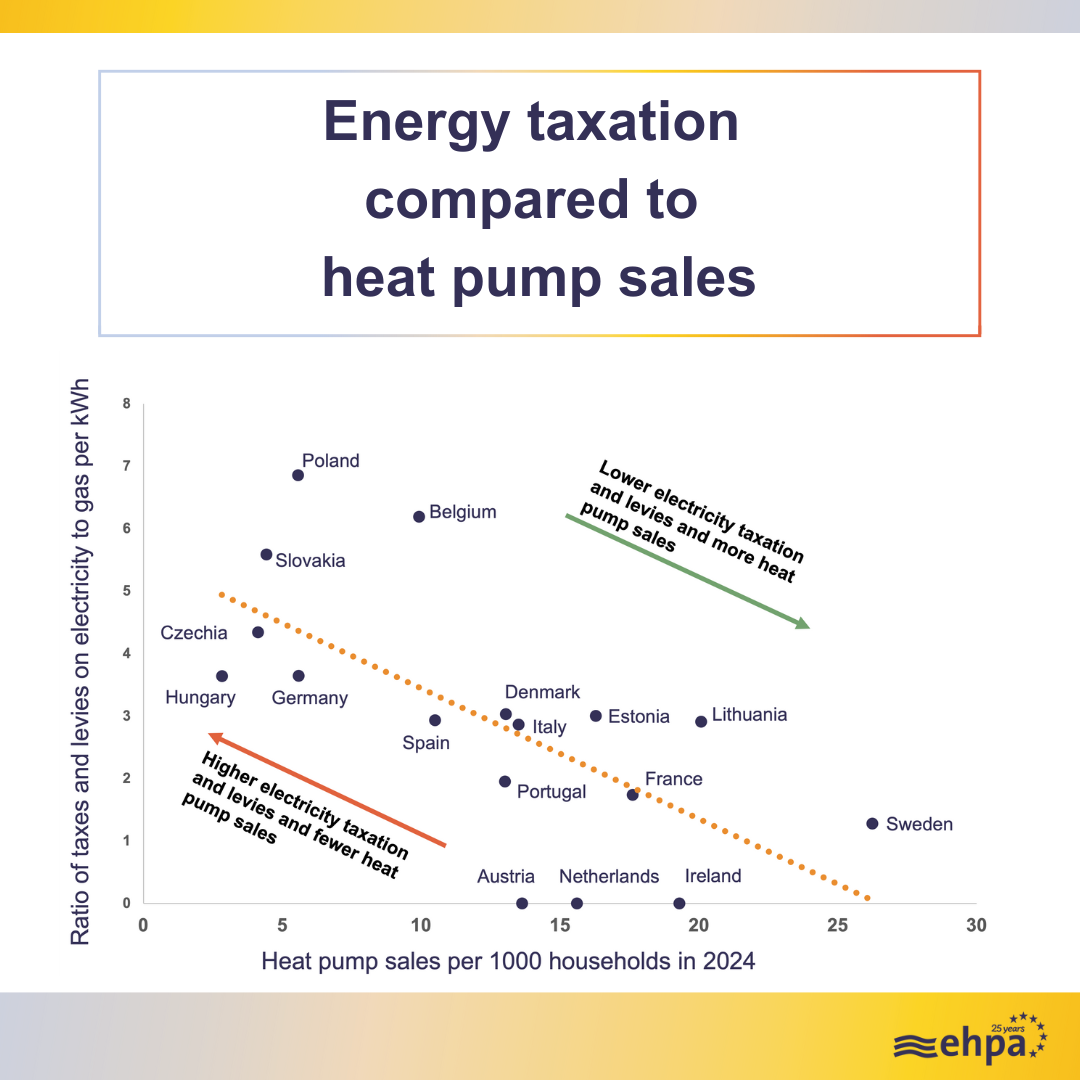 Countries that tax electricity more than gas see slower adoption of heat pumps and are more dependent on fossil fuels, new analysis of a range of European countries from the European Heat Pump Association reveals.