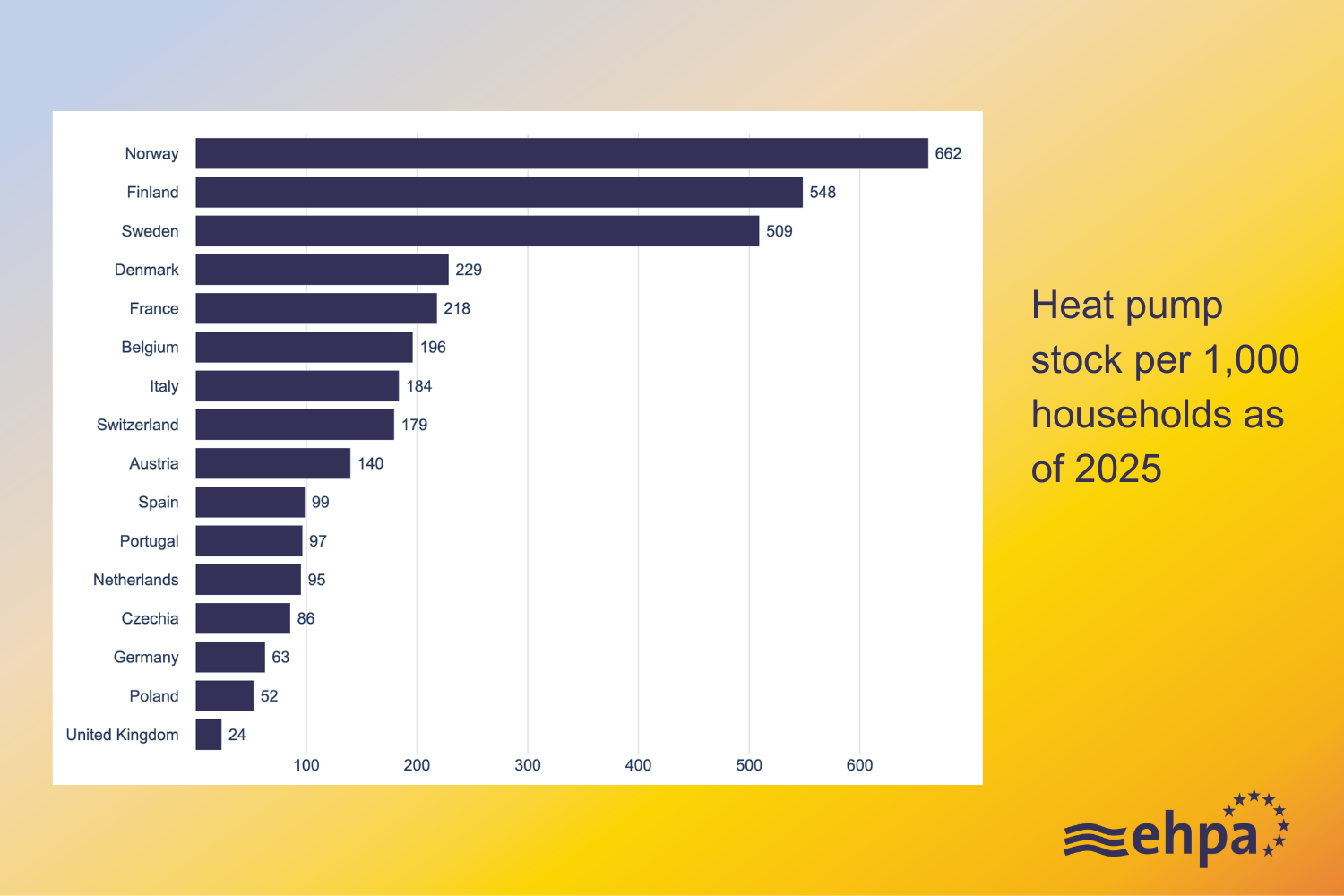 In terms of sales compared to the population size, the biggest markets remain Norway, Finland and Sweden with over 30 heat pumps sold per 1,000 households. The smallest are Poland and the UK with under five, showing the huge potential.