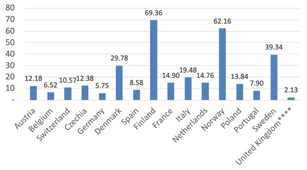 *** Sweden’s heat pump calculations now include air to air heat pumps, which is why the growth displayed is so significant.